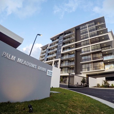 Palm Meadows Drive, Carrara: Construction consisting of 63 units over 8 floors with 2 level basement. Scope including Electrical, Data/NBN, Fire, Security & MATV.